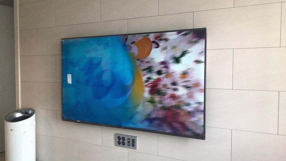 완전 깔끔 그 자체 아닌가요? 사장님이 저희 집에 도착했는데 너무 젊으셔서 놀랐어요. 요즘은 젊은 분들이 더 꼼꼼하긴 한 거 같아요. 선정리 선매립으로 시공을 해주셨고요 타일 벽면이라 사장님이 고생 좀 하셨습니다. 티브이 사이즈는 65인치예요.