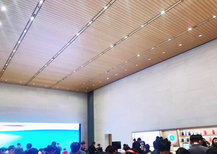 천장이 진짜 높아요. 건물은 엄청 예쁘게 잘 지어놨어요. 저도 가로수길 심심할 때 가면 아이폰 새로 나온 것도 구경하고 아이폰 말고도 맥도 한번 써보고 액세서리도 구경하고 하는 재미가 확실히 있어요.