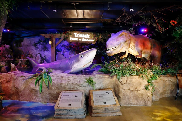 그런데 이곳은 아이들이 좋아하는 컨셉으로 식사까지 할 수 있는 곳이라서 더 끌리더라고요. 입구부터 아주 공룡 모형들 빠방 한 곳이에요. 아이들이 공룡 좋아하는 건 다들 아시죠? 공룡박물관 콘셉트로 유명한 곳이에요!