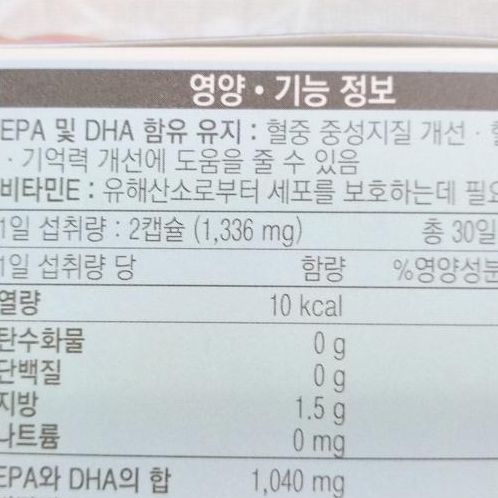 이 성분이 생선기름에서 만들기 때문에 산소나 열에 예민해서 산패할 가능성이 있다고 해요.