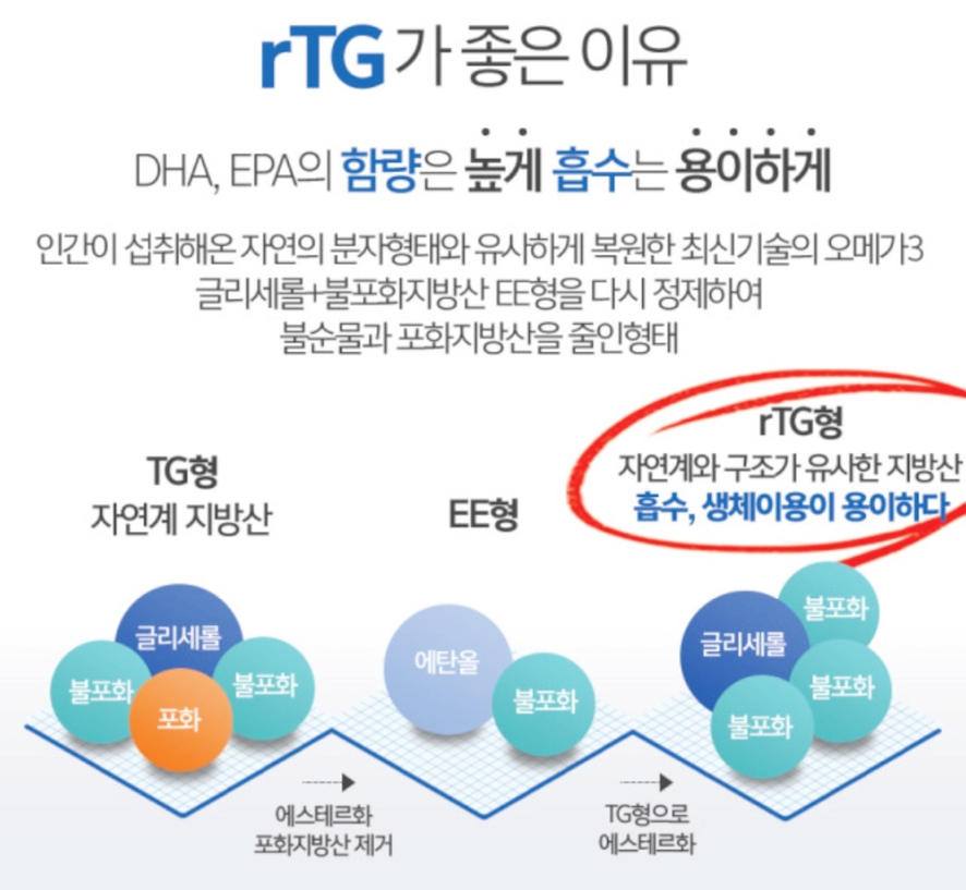 그래서 인공형태 EE형도 있는데 불포화지방산을 결합시켜서 함량이 높은 편이지만 흡수율이나 생체이용률이 자연형과 다르게 글리세롤이 없어서 흡수가 잘 안된다고해요.