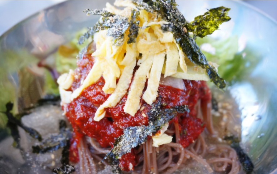 맛있는 막국수 진짜 맛있더라구요. 고추장 푸짐하게 올라있고 시원하면서도 매콤한 맛이 고기랑 되게 궁합이 좋아요. 보통 고기먹고 나서 냉면 꼭 드시잖아요. 여기 와서는 가평에서 막국수 유명하니까 막국수 드셔보세요.