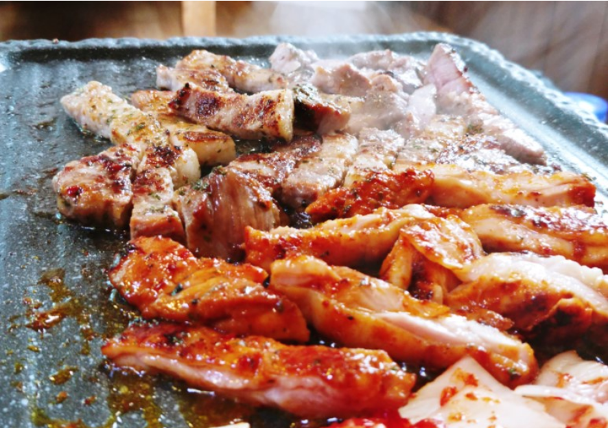 여기는 숯불 1차 초벌구이 되서 나오는 바베큐예요. 양지촌 삼겹살이랑 목살은 국내산 한돈과 명품 돼지고기를 사용하고 있어요. 고기는 와인 허브로 숙성된 목살 + 마늘 꿀로 숙성된 삼겹살로 너무 맛있게 먹을 수 있는 모듬바베큐를 먹어봅시다.