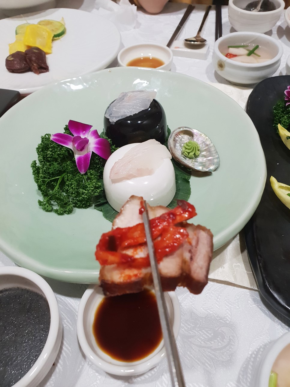 오색탕평채와 해파리냉채도 나오는데 사실 좋아하는 메뉴는 아닌데, 새콤달콤하고 뭔가 건강해지는 느낌이라서 좋더라고요. 먹다보니까 참 뭐랄까 어르신들 좋아할 것 같은 그런 음식 애기입맛은 웁니다.