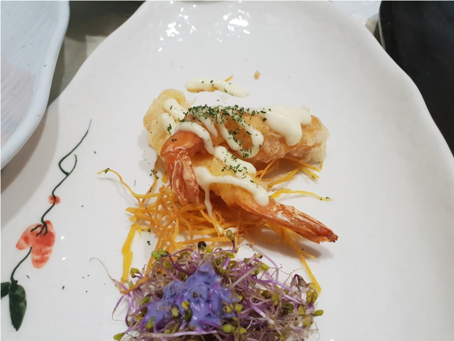 이거는 단호박이랑 새우튀김이랑 같이 나오는 새우요리인데 바삭하고 쫄깃한 식감이 제 취향을 딱 저격했어요. 뭔가 요즘 새우가 먹고 싶었는데 이때다 싶어서 정말 엄청 많이 먹었습니다. 이거 너무너무 맛있었습니다. 새우요리의 대변신이 아니었나 싶어요.
