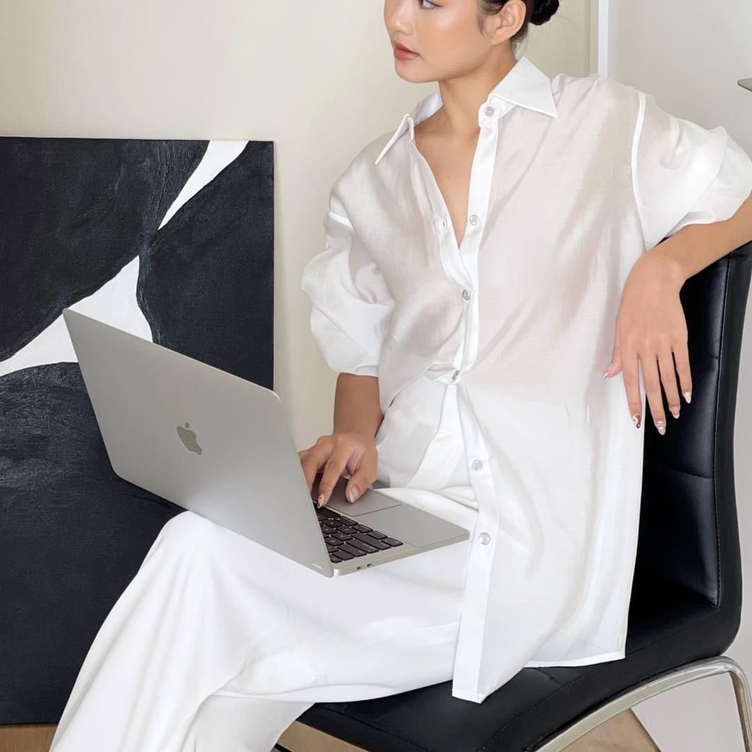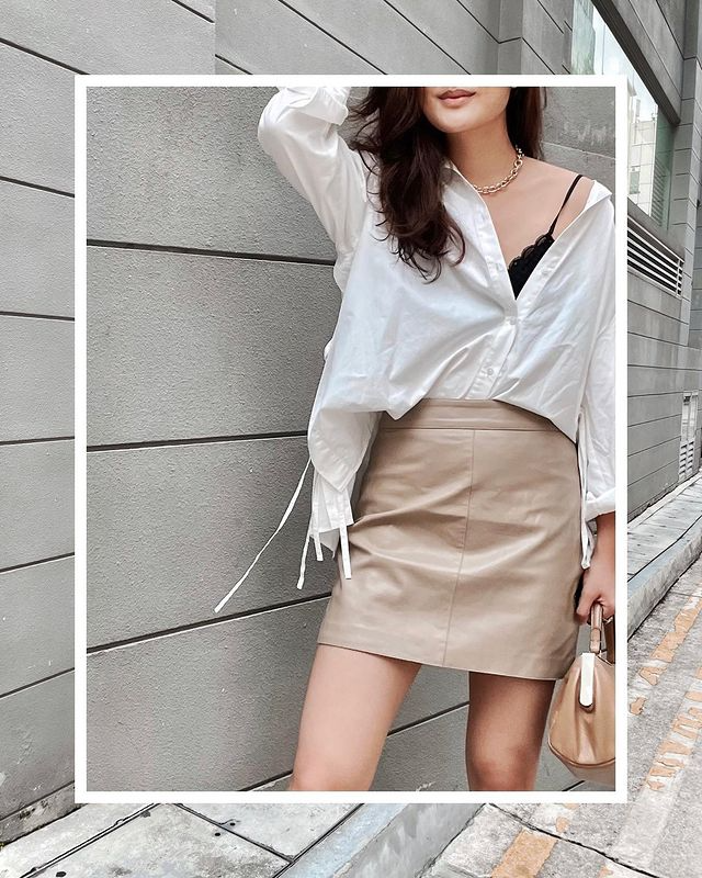 몸을 가슴부터 웨스트까지 밀착시킨 드레스 셔츠.단,보디 셔츠정도로 타이트는 아니다.