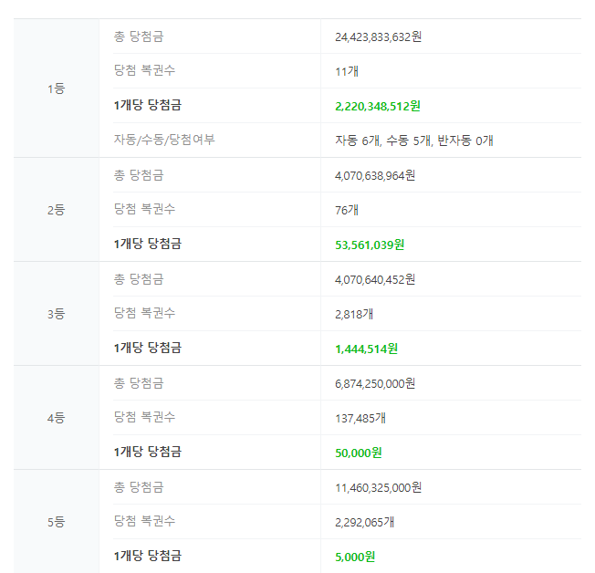 확실히 1등과 2등의 금액 차이가 크네요.