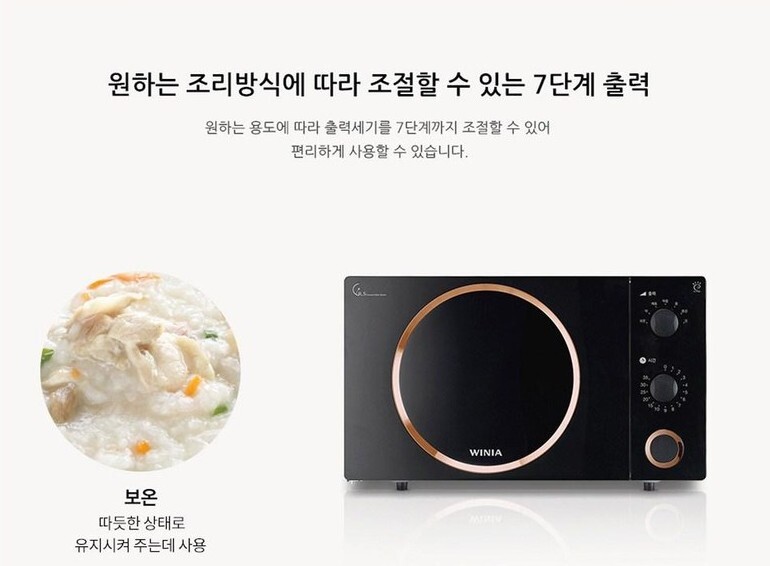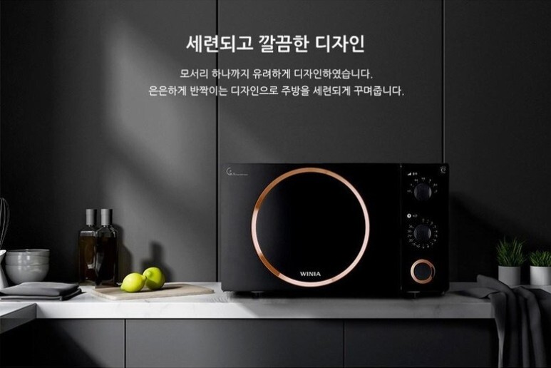 Winia의 제품은 내부 용량이 23리터입니다. 좀 더 넓어서 유리 쟁반 크기에 차이가 있어요. 사무실에 있는 전자레인지가 꽤 오래됐어요. 다른 사람이 쓰던 걸 받아서 바꾸고 싶었어요. 직접 보니 깔끔하고 세련돼 보이네요. 다이얼을 자세히 보면 내용이 매우 간단하고 명확합니다. 좋아요! 저는 이미지를 보고 문 열림 버튼이 시간 표시인 줄 알았어요.
