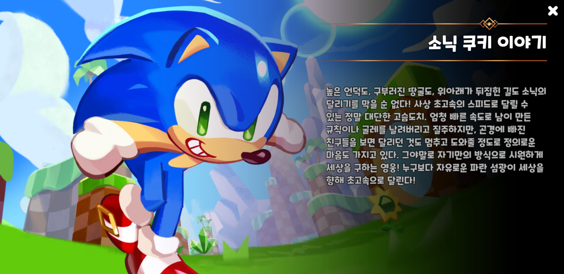 쿠키 런: 킹덤과 소닉 더 헤지호그 시리즈 간의 협업 이벤트로 등장한 첫 번째 특수 등급 쿠키입니다.
